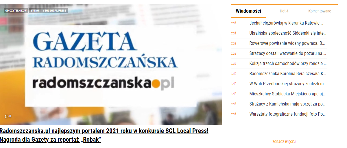 Serwis grupy City Media Cloud – radomszczanska.pl otrzymał tytuł najlepszej witryny lokalnej w konkursie Stowarzyszenia Gazet Lokalnych SGL Local Press. Konkurs odbył się po raz 14-ty.
